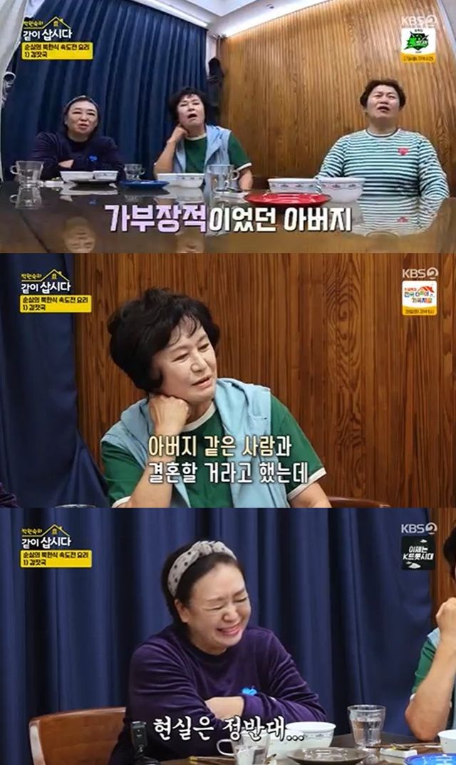 요리를 하던 중 신계숙은 이순실에게 "아버지는 어떤 분이셨냐"고 물었고, "군인이신데, 밥 투정을 너무 잘하시는 철없는 아버지"였다면서 "밥상을 두고 자식들 앞에서 엄마 욕하는 걸 자랑으로 여겼다"고 말하면서도 "북한의 아버지들이 대부분 그랬다"며 북한의 가부장적 문화에 대해 언급했다.
