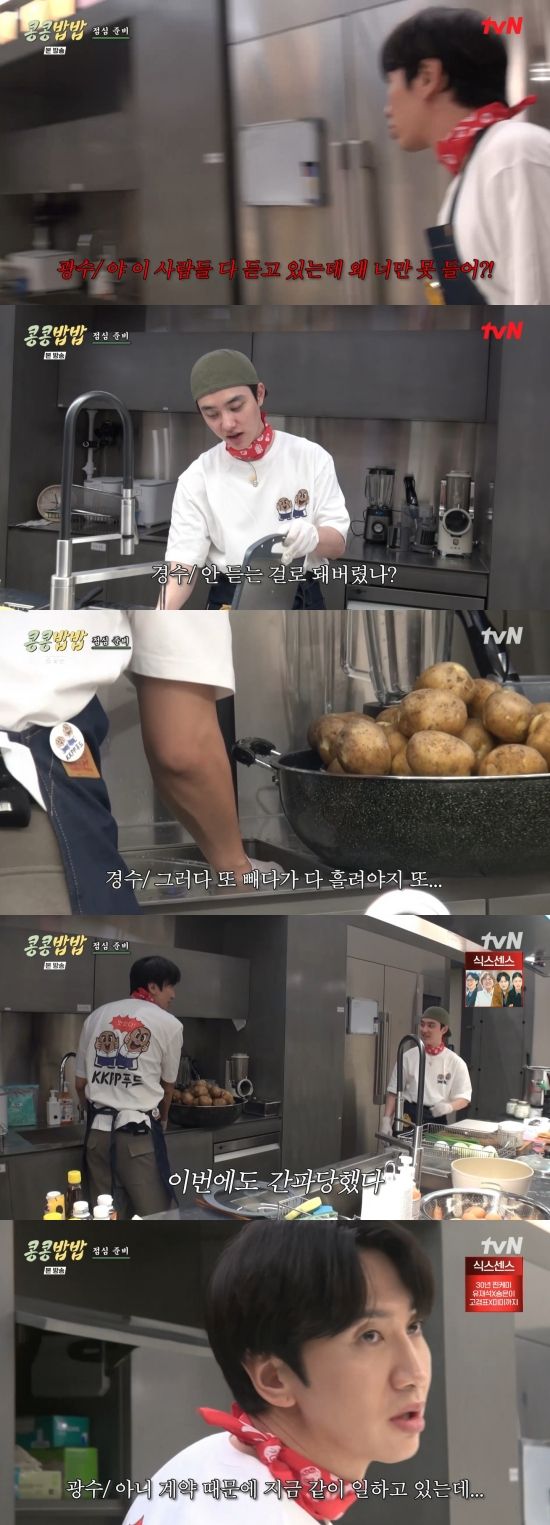 23일 방송된 tvN '콩 심은 데 콩 나고 밥 먹으면 밥심 난다'(이하 '콩콩밥밥')에서는 이광수와 도경수가 구내식당을 운영하는 과정에서 티격태격하는 장면이 전파를 탔다.