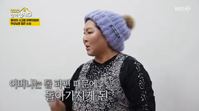 (엑스포츠뉴스 황혜윤 기자) 이순실이 과거 북한 공사현장에서 하루 아침에 부모님을 잃었던 사연을 알렸다.