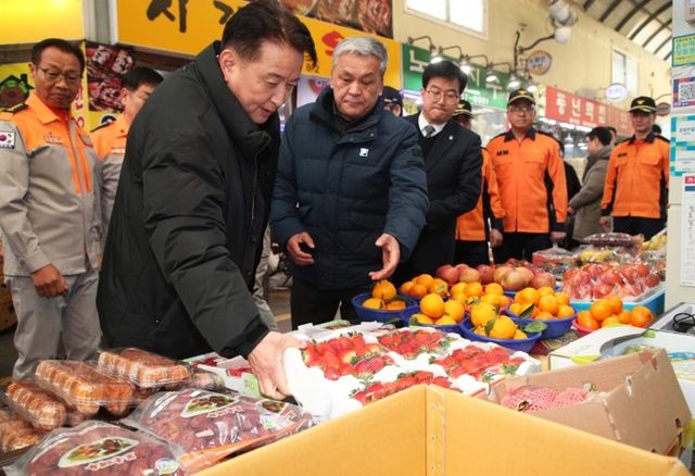 이날 김 지사는 고물가·고금리 장기화 및 내수 부진 등으로 어려움을 겪는 전통시장을 돌면서 농·축산물 등 명절 성수품을 직접 구매했고, 현장의 애로사항을 청취하는 등 전통시장 상인들을 격려했다.