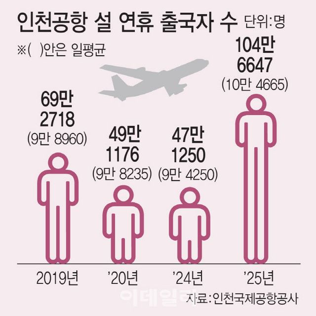 ◇역대 설 연휴 최대 105만여 명 해외로 출국