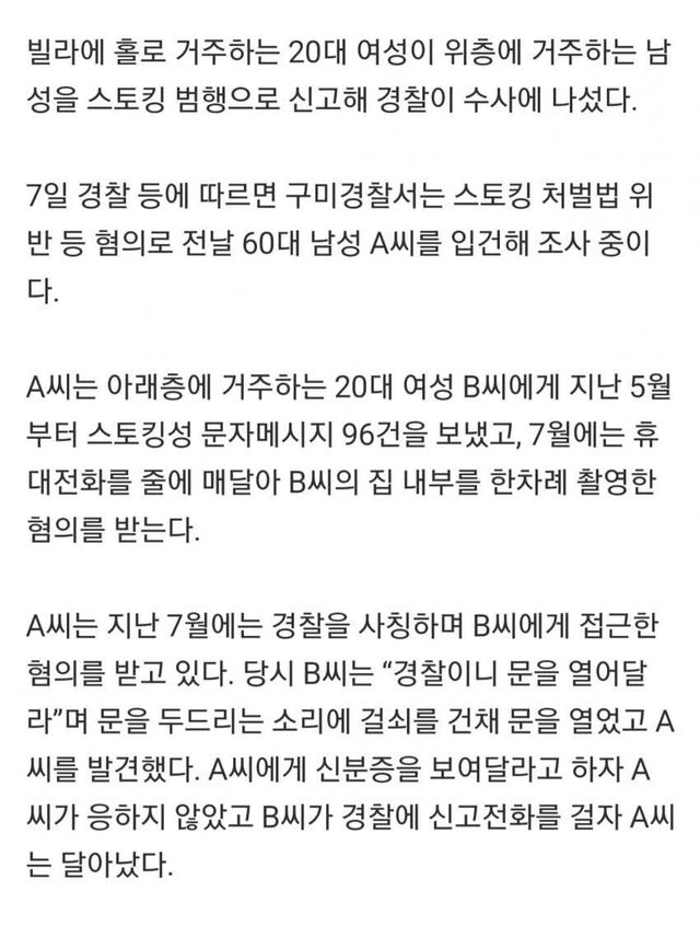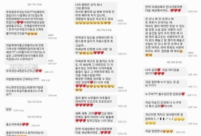 60대 할배 스토커가 20대 여성에게 보낸 문자