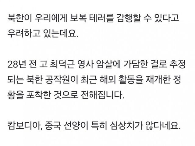 이거와 관련해서 과거 외교관 신분으로 북한 마약을 추적하다 암살당한 故 최덕근 영사님의 죽음에 가담했던 북한 공작원이 다시 활동을 재개한 정황이 발견됐다함.