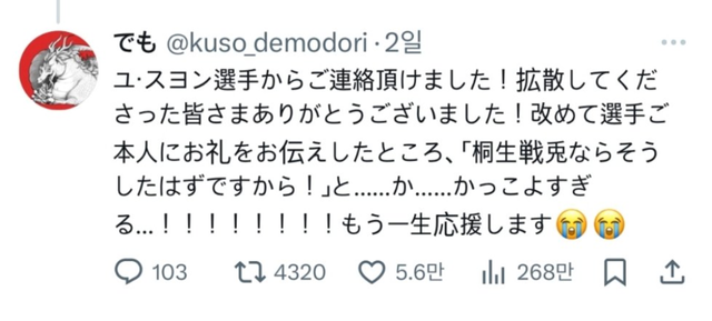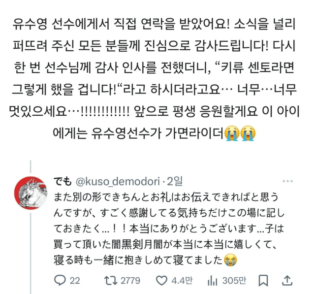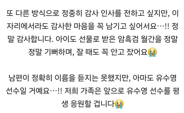 (이후에 유수영 선수에게 따로 연락을 받은 사연의 주인공)