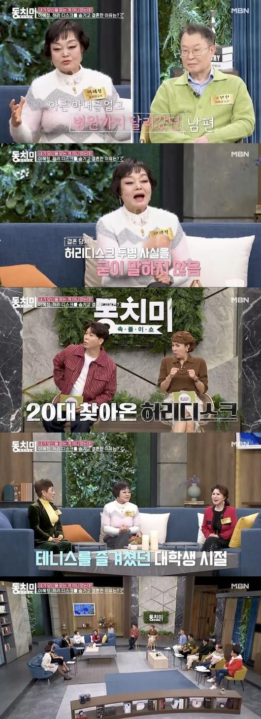 이어 이혜정은 "대학생 시절 테니스를 열심히 하다가 허리디스크가 생겼다. 당시 수술이 필요했지만, 어머니가 '시집가야 하는데 등에 흉터가 생기면 안 된다'며 반대하셔서 물리치료를 받았다"고 털어놨다. 그는 디스크로 인해 앉아있기조차 힘든 상황이었지만 결혼 전 이 사실을 남편에게 알리지 않았다고 밝혔다.