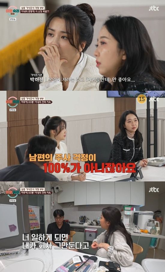 아내는 하루 동안 남편에게 85건의 전화를 한 적도, 심지어 같은 말을 반복해서 보낸 문자도 있었다. 서장훈은 "이건 상담을 받으셔야 할 문제"라고 했다.