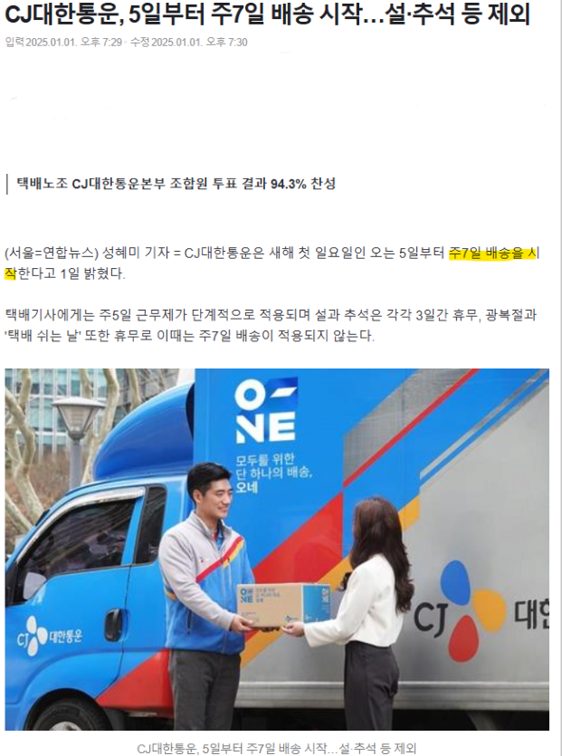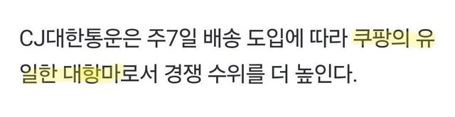 기사 내용에 따르면 주7일 배송 도입 배경은 쿠팡과의 경쟁 때문으로 보여짐.