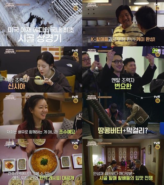 무엇보다 ‘시골맛! 피아’ 할머니들의 가르침을 받으며 이븐한 케미스트리를 발산할 에드워드리의 모습이 눈길을 끈다. 에드워드리는 여행을 통해 얻은 창의력으로 시골 할머니, 할아버지에게 음식을 대접하며 땅콩버터와 막걸리, 집 된장에 노른자를 조합하는 등 색다른 한식 레시피를 예고해 호기심을 자극하고 있다.