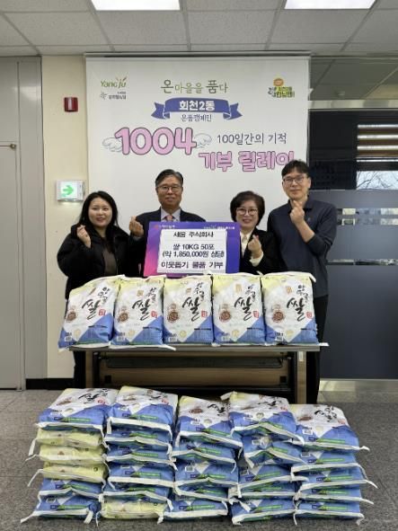이은숙 대표이사는 “회천2동 이웃분들에게 설날을 맞이해 쌀을 기부할 수 있게 되어 기쁘다”며 “앞으로도 계속 사회 공헌 활동에 앞장서겠다”고 말했다.