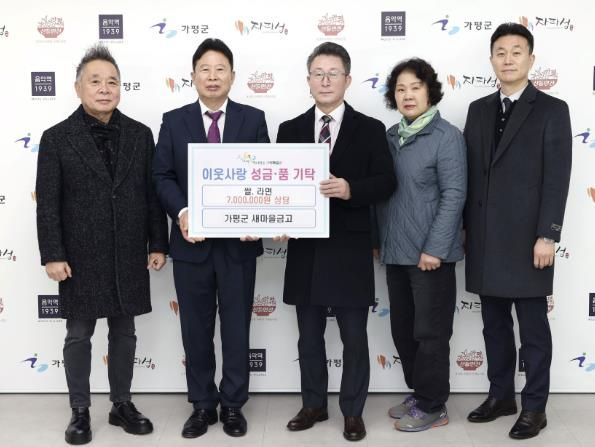[와이뉴스] 가평군 새마을금고는 23일 어려운 이웃을 돕기 위해 700만 원 상당의 백미 2,000kg과 라면 100박스를 가평군에 기탁하며 전달식을 가졌다.