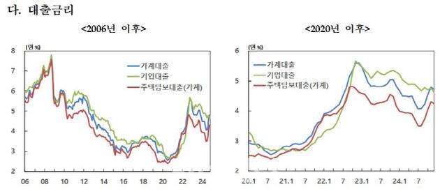 24일 한국은행이 발표한 ‘2024년 12월 금융기관 가중평균금리’에 따르면 예금은행의 신규취급액 기준 대출금리는 4.64%로 전월 대비 0.12%포인트 하락했다. 4개월만의 하락 전환이다.