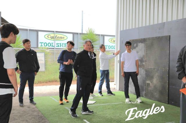 한화 감독으로서 처음 스프링캠프를 치르는 김경문 감독은 각 파트 코치들과 함께 메인 구장을 비롯해 보조 구장, 불펜, 라커룸을 비롯한 실내 공간 등 꼼꼼하게 훈련 시설을 점검했다.