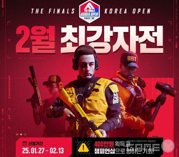 넥슨이 1월 24일부터 2월 13일까지 자회사 엠바크 스튜디오에서 개발한 ‘더 파이널스’의 시즌 5 e스포츠 대회 ‘2월 최강자전’의 참가자 모집을 시작한다.