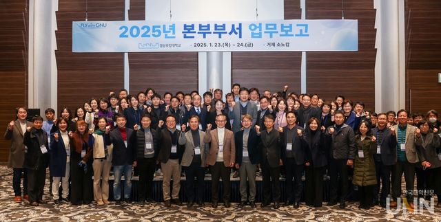 경상국립대학교(GNU·총장 권진회)는 23~24일 소노캄 거제에서 ‘2025년 대학 본부부서 주요 업무보고회’를 개최했다. 이번 업무보고회에는 권진회 총장을 비롯해 대학본부 부총장, 처장, 부처장, 과·실장, 팀장 등 110여 명이 참석했다.