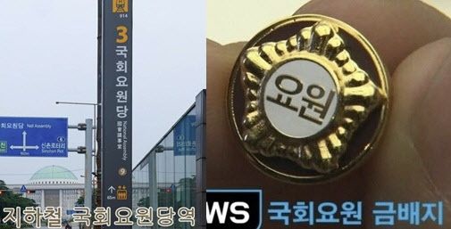 이 외에도 누리꾼들은 국회의원 배지를 국회‘요원’ 배지로 합성한 사진과 9호선 국회의사당역 출구를 ‘국회요원당’역으로 합성한 사진을 공유하기도 했다.