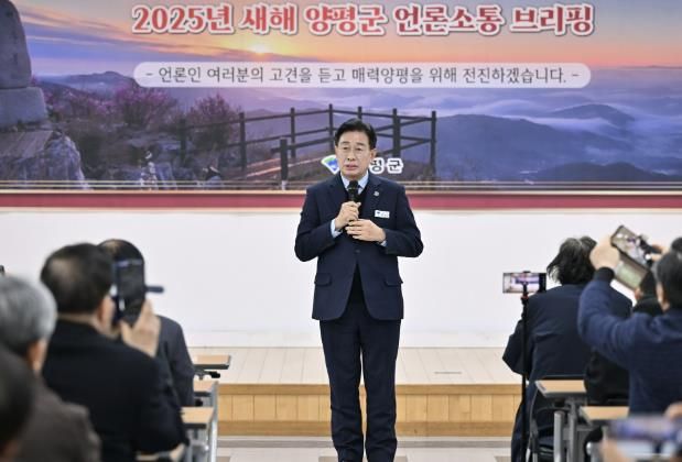 90여 개 언론사가 참석한 이날 브리핑은 ▲ 공약사업 이행률 83.4% 달성 ▲ 군 단위 전국 최초 환경교육도시 선정 ▲ 세미원 배다리 재개통과 두물머리 음악제 개최로 수도권 최초 국가정원 지정 교두보 마련 ▲ 양평역 환승시스템 구축으로 대중교통의 획기적인 체계 개편 ▲ 공고한 민관협력체계를 바탕으로 보건복지부 사업평가 복지행정상 10년 연속 수상 ▲ 전국 최초 지방행정 혁신 디지털 서비스 스마트 양평톡톡 대통령상 수상 ▲ 2024년 여름휴가 만족도 도내 1위 수도권 최고의 관광지 양평 등 지난 해 군정 성과와 2025년 ‘관광, 환경, 건강, 안전’ 4대 군정 핵심 키워드를 바탕으로 ▲서부권, 중부권, 동부권 권역별 관광 인프라 구축 ▲ 현장체감형 자원순환 교육, 세대별 맞춤 생태 감수성 교육, 1회용품 제로화 사업 ▲ 전국 으뜸의 체육시설 조성, 양평 밀 등 지속가능한 미래 자원 개발 ▲ 국제안전도시 공인 인증, 스마트도시 솔루션 확산사업 등의 군정 계획을 전진선 군수가 직접 설명했다.