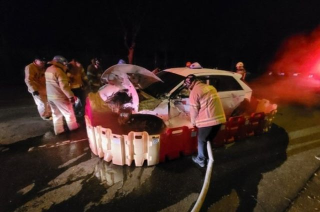 24일 오전 2시 48분쯤 대화동의 도로에서 발생한 이 사고의 충격으로 차량 하부 배터리 부근에서 연기가 발생하면서 차에 불이 붙었다.