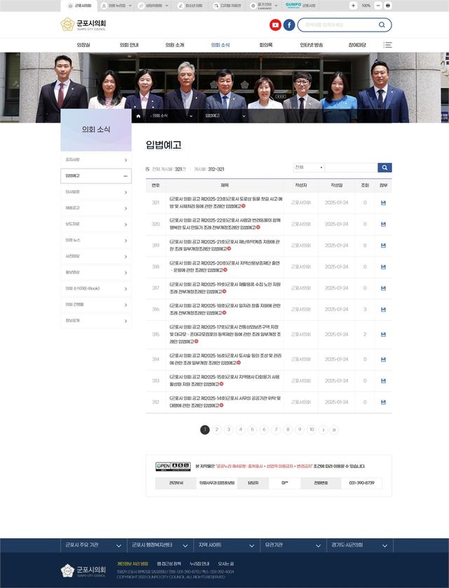 시민 의견은 2월 3일까지 접수 가능하며, 시의회 누리집 입법예고 게시판에 첨부된 서식을 작성해 이메일, 우편(군포시 청백리길 12)으로 제출하면 된다. 입법예고된 자치법규의 상세 내용은 군포시의회 누리집(gunpocouncil.go.kr→의회 소식→입법예고) 및 자치법규정보시스템(elis.go.kr→입법예고), 군포시청 홈페이지에서도 확인할 수 있다.