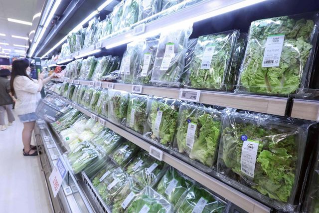 서울의 한 대형마트에서 시민들이 상추와 깻잎 등 쌈채소를 고르고 있다. / 뉴스1 자료사진
