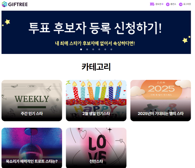 스타를 위한 신개념 팬 투표 서비스인 '기프트리' 에서 '3월 생일 인기스타' 투표를 진행하고 후보를 공개했다. 이번 투표는 1월 25일부터 2월 25일까지 한 달간 진행된다.