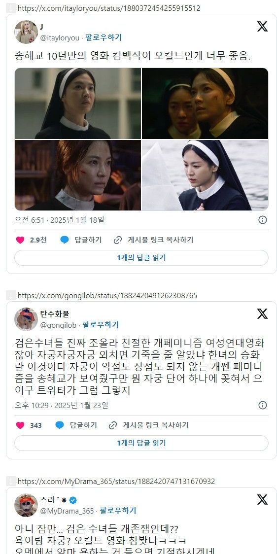 개봉전부터 여혐 논란 터졌던 영화 '검은 수녀들' 반응