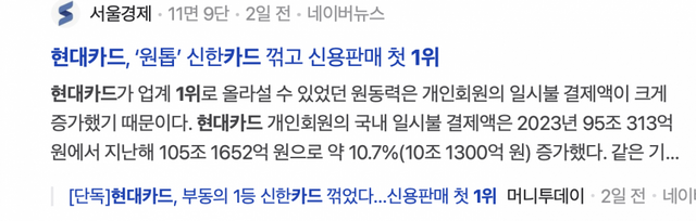 애플페이 도입전 현카는 4~5위 머무르는 카드사였음