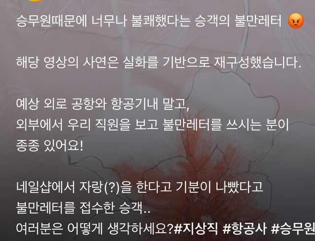 본인이랑 대화하는거 아니고 네일샵 사람이랑 대화중인 승무원