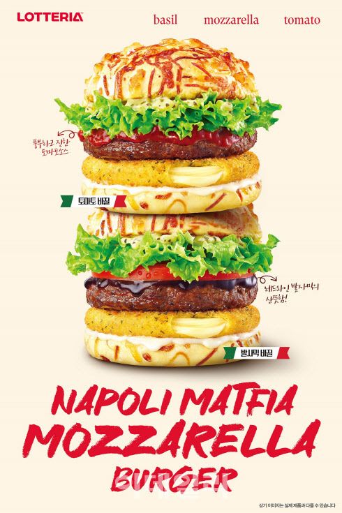 ‘나폴리맛피아 모짜렐라버거’는 롯데리아의 스테디셀러인 ‘모짜렐라 인 더 버거’에 권 셰프의 특별한 레시피를 접목한 신메뉴다.