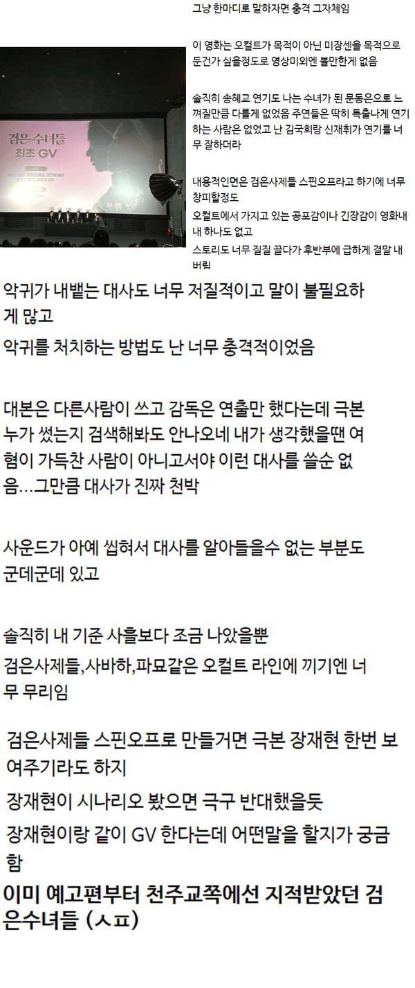 최근 한 온라인 커뮤니티에 영화 '검은수녀들'의 후기가 올라와 화제가 되고 있다.