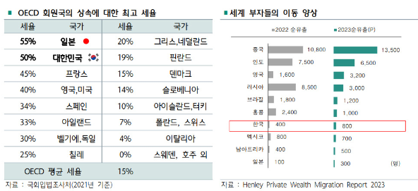 한국의 고액순자산보유자(현금 100만 달러 이상) 순유출