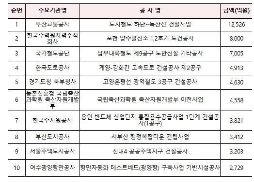 한편, 올해 발주예정인 주요 공공분야 물품·용역·공사의 사업(공사)명, 발주기관, 발주시기, 예산금액, 계약방법 등 상세내용은 나라장터에 접속해 확인 가능하다.