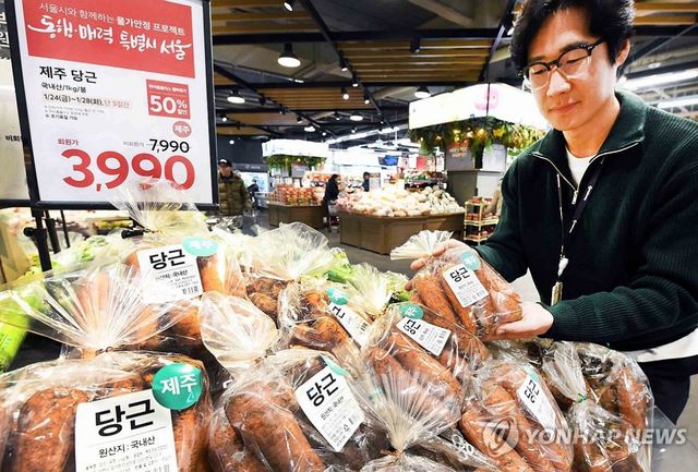 설 연휴를 앞둔 홈플러스가 최대 50% 할인 소식을 전했다. 홈플러스는 서울시와 협력해 24~28일 딱 5일간 서울 시내 18개 매장에서 당근을 반값에 판매한다고 24일 밝혔다.