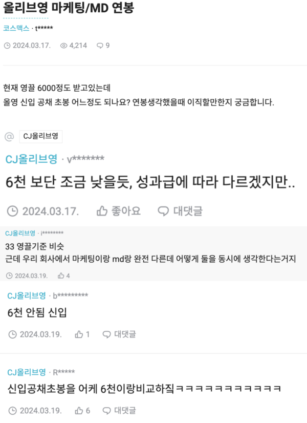 그러나 일부 게시물에서는 "대리 연봉 6천만 원은 못 넘긴다"며 다소 보수적인 평가도 나오고 있다.