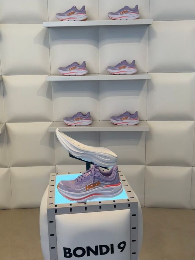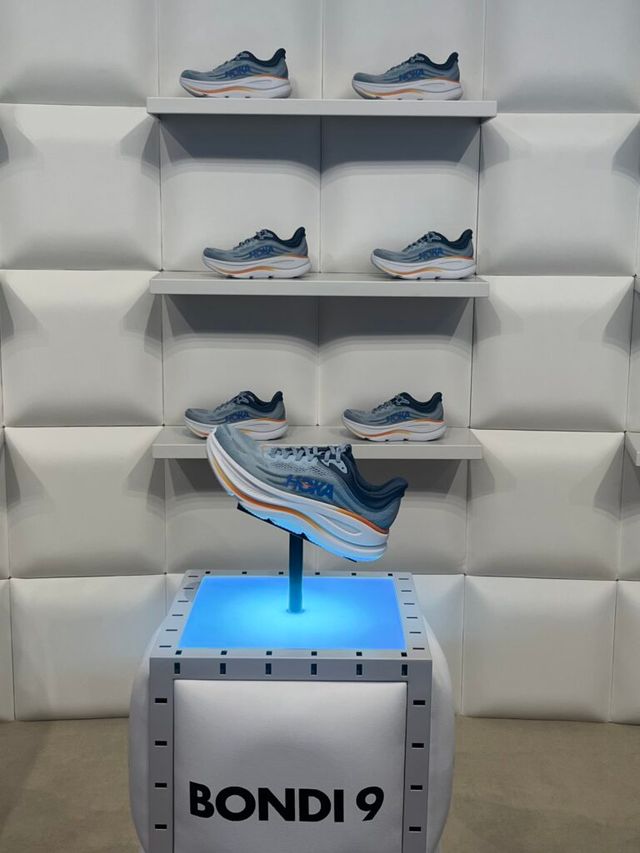 쿠션으로 둘러싸인 이곳은 글로벌 스포츠 브랜드 호카의 신제품 ‘본디 9’ 스니커즈의 선공개 현장입니다. ‘본디’ 스니커즈는 2011년 첫선을 보인 제품인데요. 본디만의 독특한 쿠셔닝과 지지력 때문일까요. 출시 후 얼마 되지 않아 러너들 사이에서 빠르게 인기를 얻으며 호카의 아이코닉한 제품으로 자리 잡았습니다.