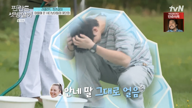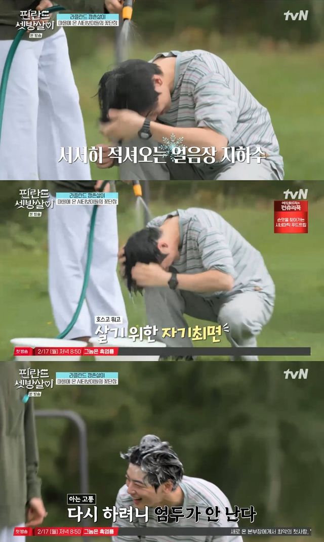 이에 차은우는 결국 차가운 지하수로 머리를 감았다. 그러면서도 "아 따뜻해. 아 더워 여름이야"라며 자기최면을 걸거나 "머리가 점점 감각이 없어진다"며 웃기도 했다.