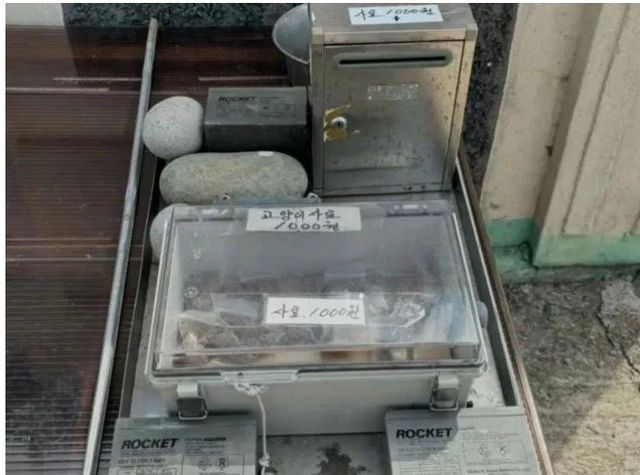 관광객들 오니 주민들이 고양이 집앞에 묶어 놓고 사료 팔기 시작