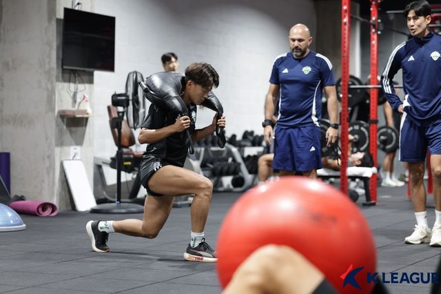 여기서는 나도 처음(전북) 동계 훈련했는데 전에 했던 것보다 강한 위주의 운동인 것은 맞고 나도 한국에서 네 번째 프리시즌을 하는데 그 중에서 가장 힘들고 '빡센' 훈련인 것 같다.