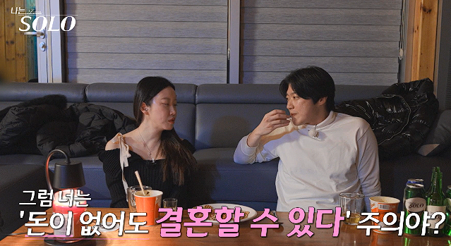 여자가 돈이 솔직히 중요하지만 솔로나라와서 만난 인연이 있고 우리가 좋은게 중요하다고함 그리고