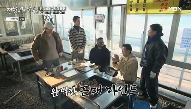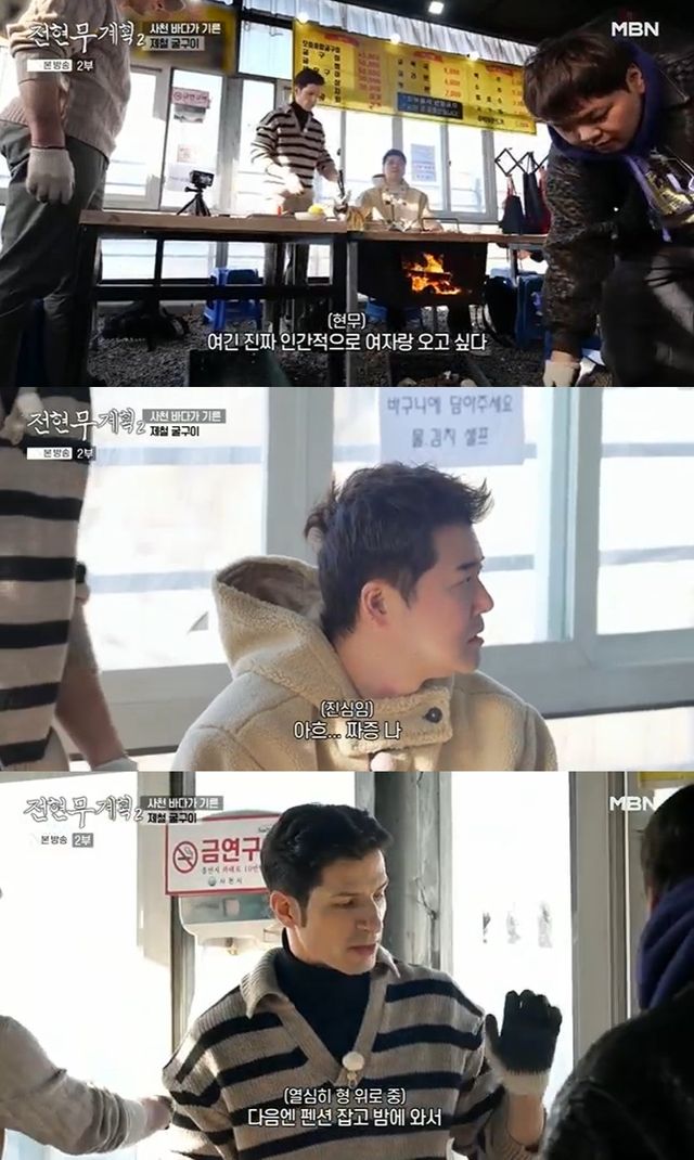 이후 조개구이와 굴구이를 즐기던 전현무는 "여긴 진짜 인간적으로 여자랑 오고 싶다"며 짜증냈다. 이에 알베르토는 "오늘 그래서 알려드리기만 했고, 다음에 펜션 잡고 밤에 와서"라고 말하며 전현무를 위로했다.
