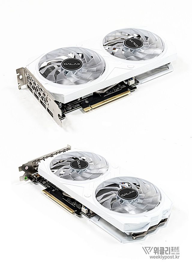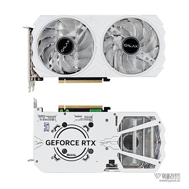 갤럭시 RTX 4060 EX WHITE OC는 이름 그대로 세련된 화이트 컬러 디자인을 채택해 최근 PC 튜닝 시장에서 큰 인기를 끌고 있다. 방열판, 팬, 백플레이트까지 통일된 화이트 색상은 밝고 깔끔한 시스템 구성을 원한다면 매력적인 선택지다.