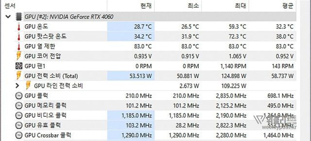 또한, RTX 4060 EX WHITE OC는 115W의 낮은 전력 소모량과 8핀 보조 전원 슬롯 하나만으로도 충분히 구동된다. 이는 고용량 전원공급장치가 필요하지 않으면서도 최신 AAA 타이틀과 e스포츠 게임에서 충분한 성능을 발휘할 수 있다.