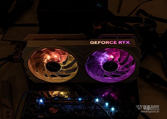 또 다른 매력은 RGB 조명 효과다. 듀얼 팬과 측면에 배치된 RGB 조명은 PC 내부를 화려하게 꾸밀 수 있는 요소로, 메인보드의 RGB 헤더와 연동해 다양한 색상과 패턴을 설정할 수 있다. 비록 ARGB와 같은 개별 조명 제어는 지원하지 않지만, 기본적인 RGB 연출만으로도 깔끔하면서도 세련된 시스템을 완성할 수 있다. RGB 조명을 활용해 시스템 테마를 맞추고자 한다면 말이다.