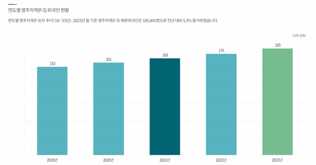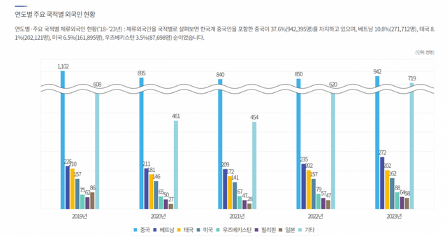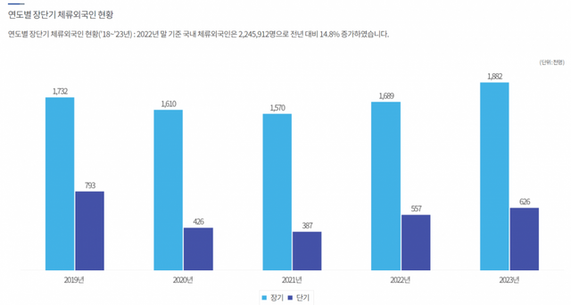 1. 한국에 체류중인 외국인은 꾸준히 증가중 (소폭이지만)