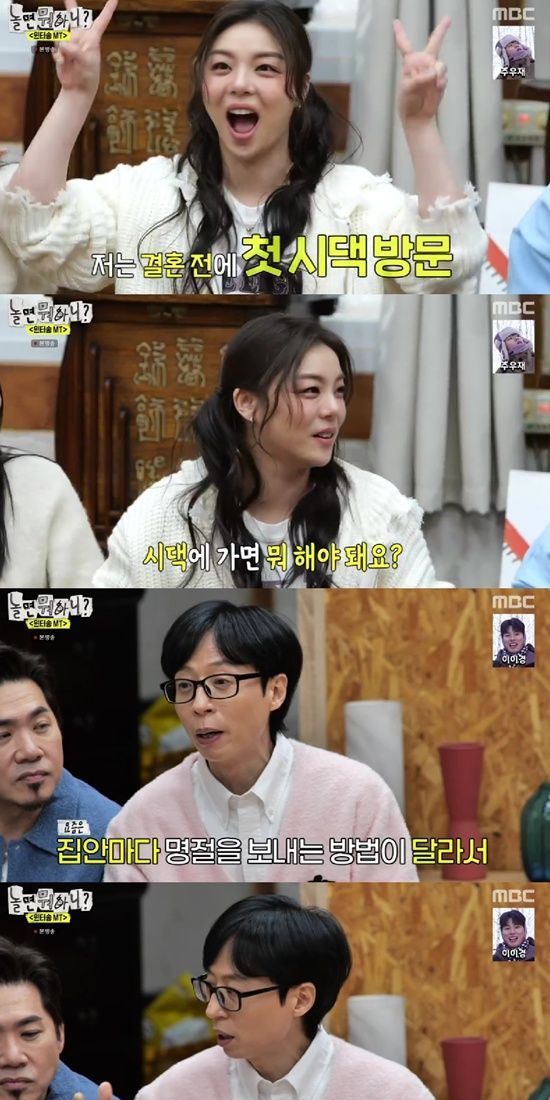 에일리는 "올해 결혼 전에 처음으로 시댁을 간다"며 예비 부부가 되면서 처음 맞이하는 명절에 신나하며 브이 포즈를 취하더니 "(시댁에 가면) 뭐 해야 되냐"고 물어보았다.