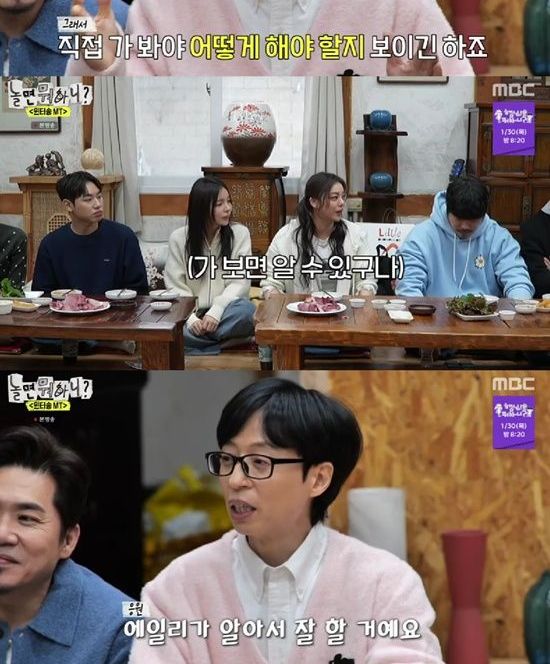 이에 유재석은 "가면 집안마다 전을 하는 집안도 있고, 안 하는 집안도 있다. 가보면 내가 어떻게 해야 할지 보인다"며 "에일리가 알아서 잘 할 것"라고 응원했다.