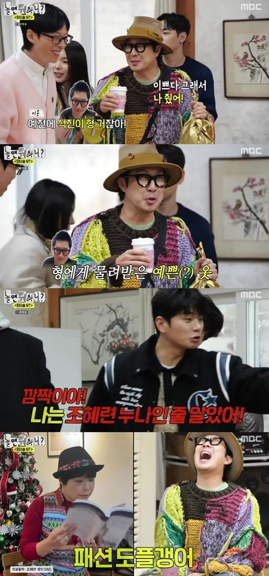 하하는 지석진에게 물려받았다는 현란한 색상의 옷을 입고 나타났고, 이를 본 이이경은 "깜짝 놀랐다. 나는 조혜련 누나인 줄 알았다"고 말해 웃음을 자아냈다.