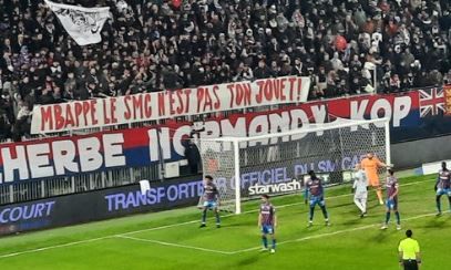 이 날 관중석엔 "열심히 일하고 충성심을 보여야만 이 클럽의 레전드가 될 수 있다", "국제 무대에서 이름을 알리기 전에 지역 사람들을 존중하라"와 같은 문구가 적힌 걸개가 걸렸다. 이 중 가장 크게 적힌 문구는 바로 "음바페, SMC(캉)는 너의 장난감이 아니다"였다.