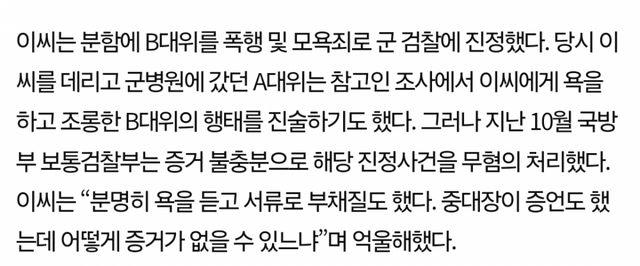 국방부: 군의관 폭행, 모욕? 그거… 증거가 없어서 당연히 무혐의임 ㅇㅇ