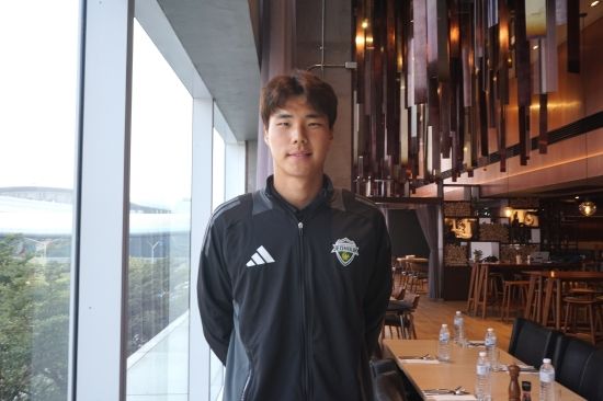 지난 24일(한국시간) 태국 방콕 근교 전북 현대 숙소에서 만난 송범근은 오랜만에 전북 구단 엠블럼이 달린 훈련복을 입고 등장했다.