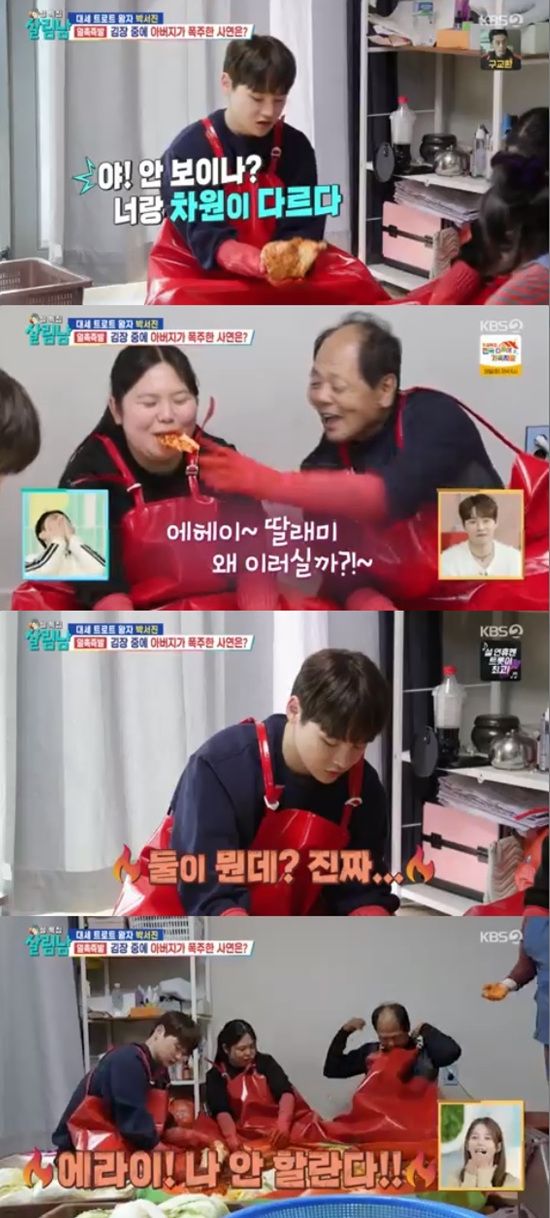 박서진 어머니는 김장을 하면서 박효정을 향해 결혼 잔소리를 시작했다. 박효정에게 약점이 잡힌 박서진 아버지는 티가 나게 딸 편을 들어줬다.